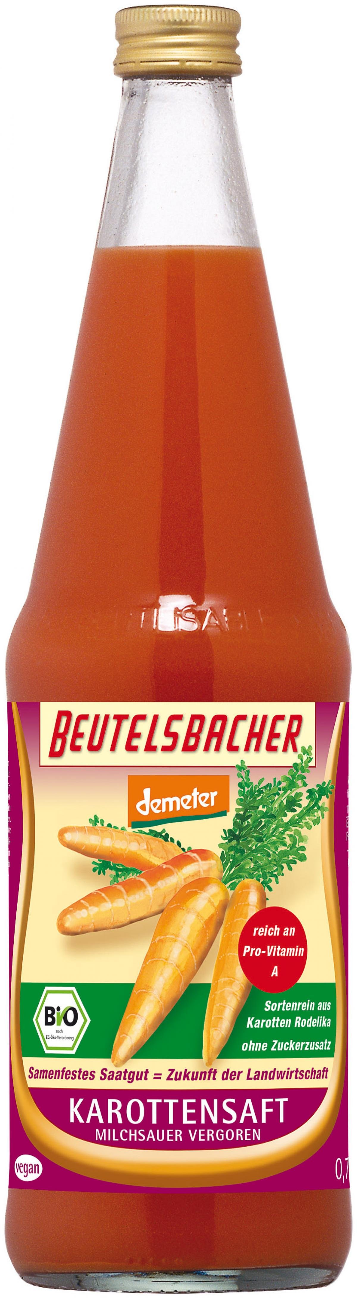 Sortenreiner milchsauer vergorener Direktsaft aus erntefrischen Karotten ”Rodelika“, die von biologisch-dynamisch gezüchtetem, gentechnikfreiem und samenfestem Saatgut stammen, das heisst nicht von Hybrid-Samen. Hybride entstehen aus der Kreuzung künstlich erzeugter Inzuchtlinien und sind daher umstritten. Mit dem Kauf unterstützen Sie den Anbau und die Saatgut-Züchtung samenfester Karottensorten. Die samenfeste Rodelika ist eine grosse glattschalige Karotte mit intensiv orange-roter Farbe und kräftigem, süssaromatischem Geschmack. Die Karotten werden von Landwirten im sonnenverwöhnten Baden-Württemberg biologisch-dynamisch angebaut. Durch milchsäurebildende Mikroorganismen entsteht eine natürliche Gärung (Lactofermentverfahren).