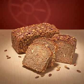 19% Dinkelauszugmehl Type 812, 15% Vk-Roggenmehl, Wasser, 12% Kürbis­kerne, 7% Vk-Dinkel­mehl, 7% Kürbiswürfel, 5% Roggen - gekeimt, Rübensirup, Meersalz, Hefe, Backferment