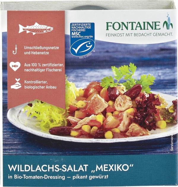 Dass der Lachs so beliebt ist, liegt wohl auch an seiner attraktiven Farbe. Beim Wildlachs entsteht die „lachsrote“ Tönung durch die Ernährung mit winzigen Krebstieren (Krill). Als Kaltwasserfische punkten Wildlachse mit einem hohen Gehalt an wertvollen Omega-3-Fettsäuren, die unser Körper nicht selbst bilden kann. Mit Fontaine Wildlachs-Salaten ist die Aufnahme bequem und zudem ein kulinarischer Genuss.