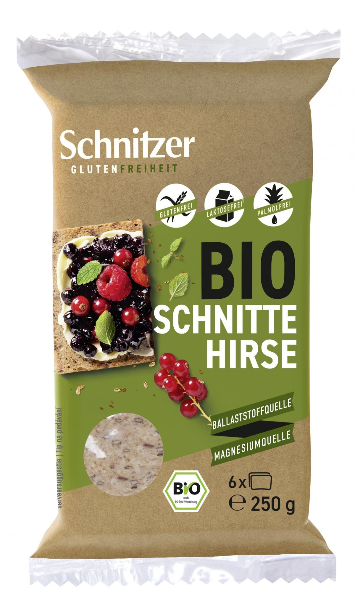 (Glutenfreies Bio Hirsebrot): Eine gelungene Auslese aus Genießerhirse und feinem Leinsamen - enthält von Natur aus Ballaststoffe und Magnesium. Hirse ist eine der wenigen glutenfreien Getreidearten. Aus diesem Rohstoff brauen wir übrigens unser Schnitzer Bräu.